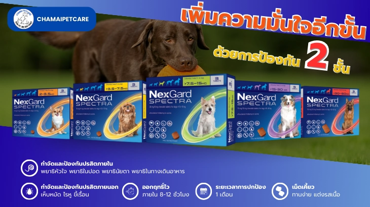 เหนื่อยไหมกับการดูแลสุนัขที่ยุ่งยาก? ให้ Nexgard Spectra ดูแลสุขภาพสุนัขที่คุณรักให้ "ครบ จบ ในเม็ดเดียว" หยุดกังวลเรื่องเห็บ หมัด ไร และพยาธิหนอนหัวใจ เริ่มต้นการปกป้องที่ง่ายและมีประสิทธิภาพที่สุดได้แล้ววันนี้!
