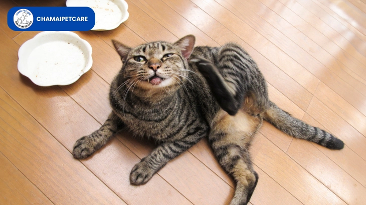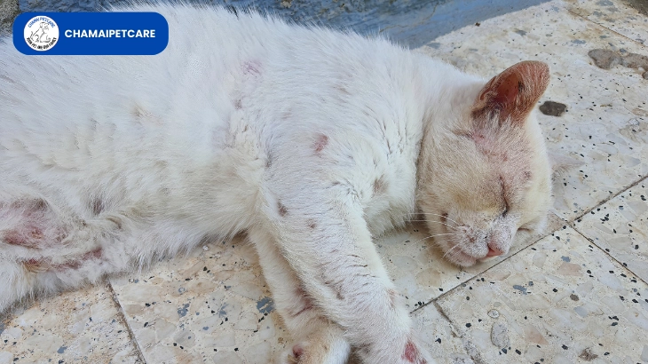 - อาการคัน: แมวอาจมีอาการคันหรือไม่ก็ได้ และมักไม่รุนแรงเท่าอาการแพ้จากเห็บหมัด