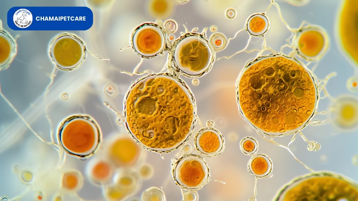 เชื้อยีสต์ที่ก่อโรคผิวหนังในสุนัขส่วนใหญ่คือ Malassezia pachydermatis ยีสต์ชนิดนี้เป็น เชื้อประจำถิ่น (Normal Flora) ที่อาศัยอยู่บนผิวหนังและในช่องหูของสุนัขทุกตัวอย่างสงบ แต่เมื่อใดที่ผิวหนังมีสภาพแวดล้อมที่เหมาะสมต่อการเจริญเติบโต (เช่น มีความชื้นสูง หรือมีสารอาหารเยอะ) ยีสต์จะเพิ่มจำนวนอย่างรวดเร็วจนก่อให้เกิดการอักเสบและอาการของโรค