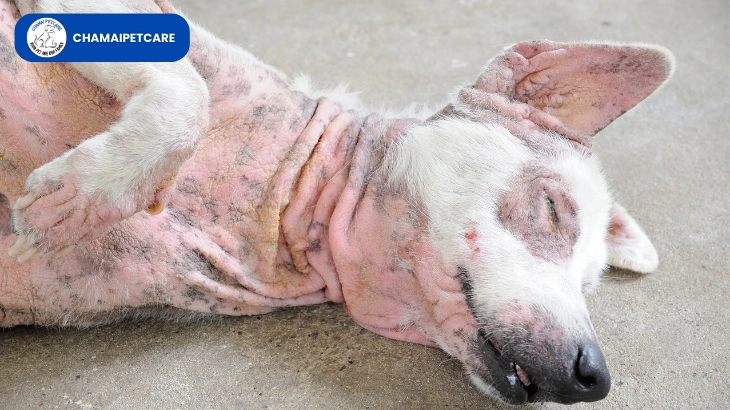 - อาการคันอย่างรุนแรง: สุนัขจะเกา, เลีย, หรือกัดผิวหนังบ่อยครั้ง ซึ่งอาจทำให้เกิดบาดแผลถลอกตามมา